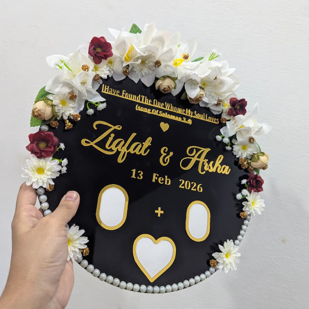 Make your day memorable with TrendyHac’s Floral Black Acrylic Nikah Thumb Board — a handcrafted design for your Nikah or wedding.