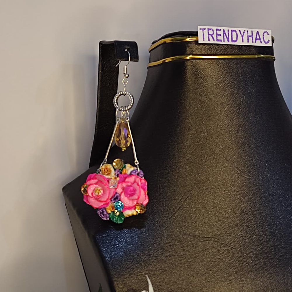 These Pink Rose Charm Earrings by TrendyHac feature hand-sculpted polymer clay roses designed to bring a soft and romantic look to your style. Lightweight, durable, and perfect for gifting.
